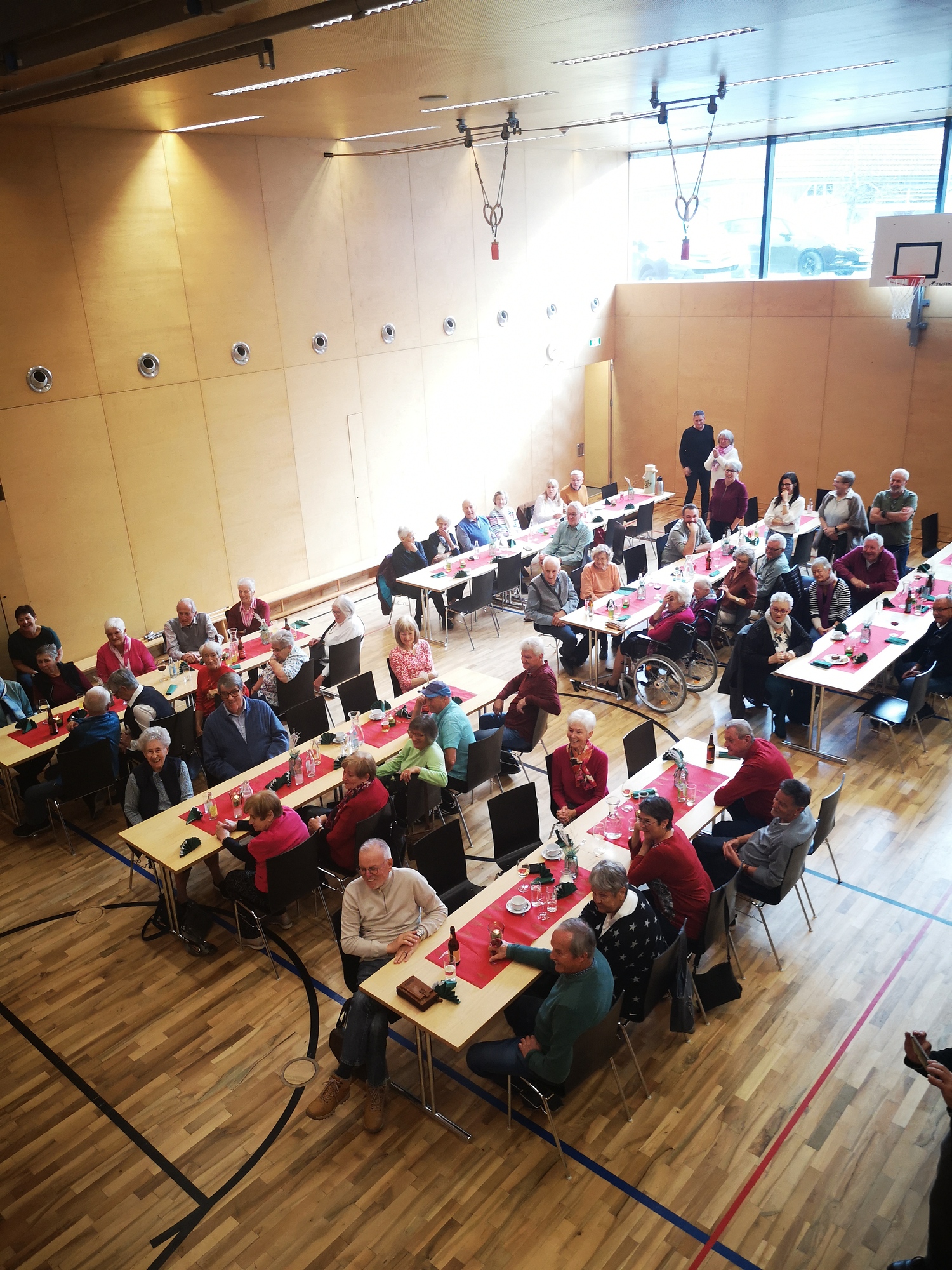 Große Freude bereitete der Auftritt des Kindergartens: Mit leuchtenden Augen sangen die Kinder Advent- und Weihnachtslieder und sorgten damit für einen berührenden Moment. Eine kurze Besinnung führte weiter in die ruhige Adventzeit – danach wurde gemeinsam, begleitet von Reinhold Nachbaur an der Handorgel, fröhlich weitergesungen.